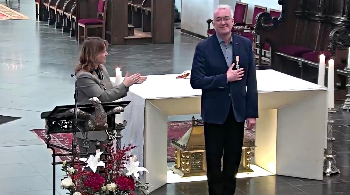 Loco-burgemeester Eva Oosters en decorandus Wouter van Belle | beeld kerkdienstgemist.nl